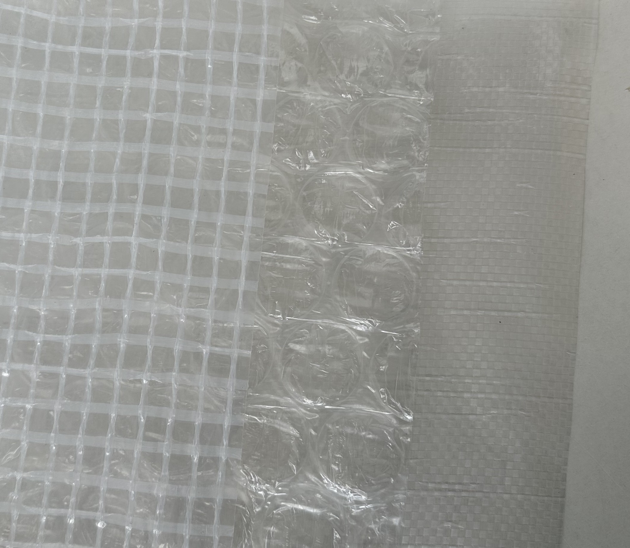 Extra starke, GITTERVERSTÄRKTE Luftpolsterfolie mit stabilem Rand ringsum. Wahlweise auch mit Ösen.